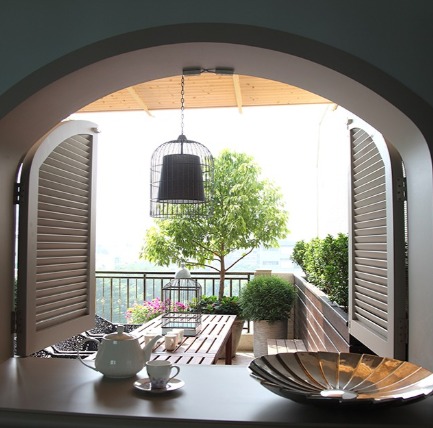 空中樹院、水晶壁爐、牛津訂製沙發、舊米黃大理石地板英倫風客廳﹔