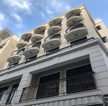 崗石城堡渾厚姿態、鍛造憑欄弧形陽台、黃金比例長窗與格窗,